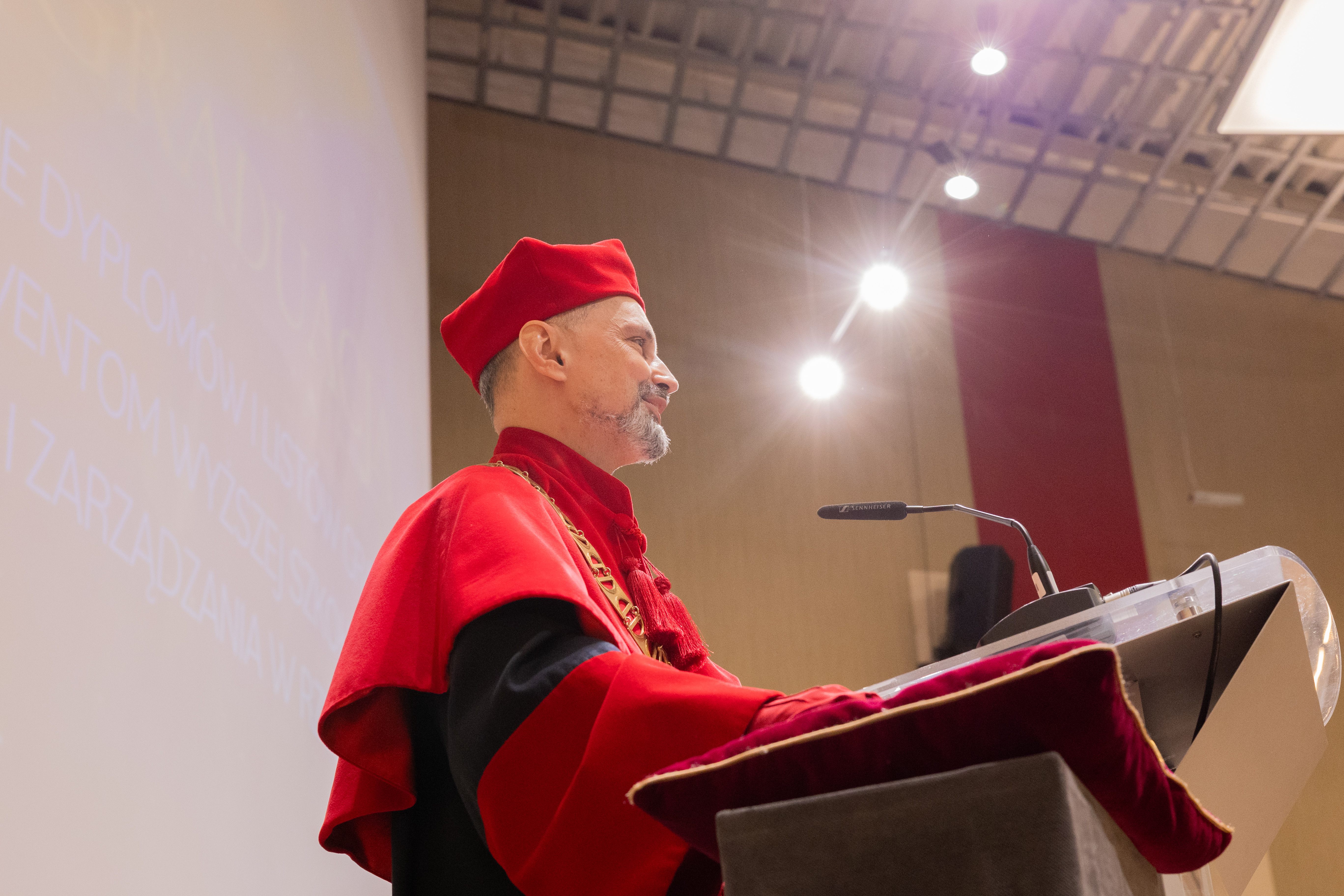 Podczas swojego przemówienia Rektor dr. hab. Andrzej Rozmus prof. WSIiZ podkreślił wagę wyrzeczeń, których niewątpliwie studenci podejmowali się na rzecz swojej edukacji. Podziękował również zebranym osobom towarzyszącym, jako najbliższych absolwentów za ich wsparcie. Rektor zażartował, że gdyby uroczystość odbywała się tydzień temu, dotarliby jedynie najbardziej zaangażowani. Na szczęście sobotniej pogodzie daleko było do zamieci śnieżnych.