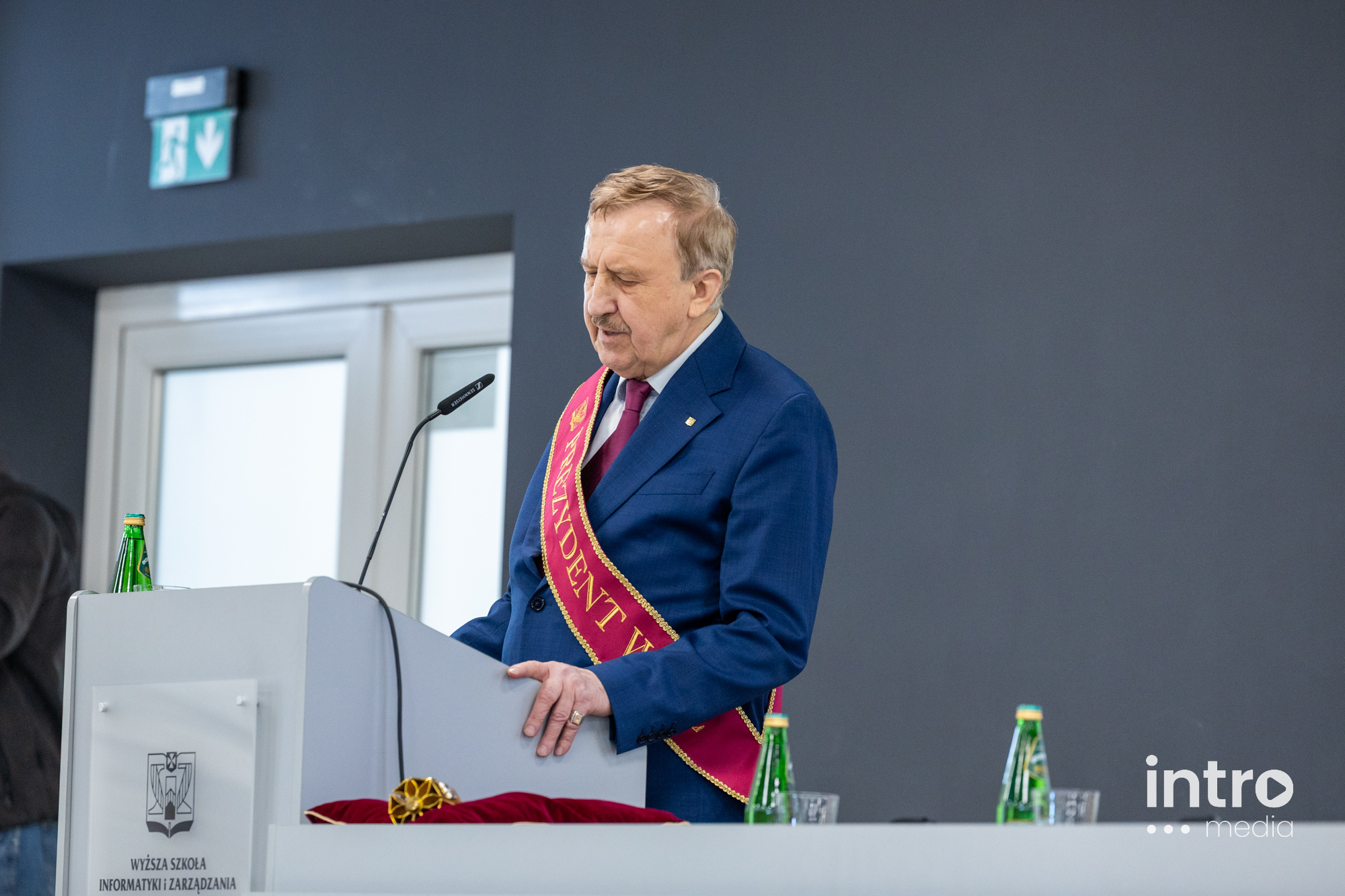 Następnie głos zabrał dr hab. inż. Tadeusz Pomianek, prof. WSIiZ oraz prezydent uczelni. Nakreślił on bardzo szczegółowo rozwój Wyższej Szkoły Informatyki i Zarządzania podając wiele twardych danych liczbowych: