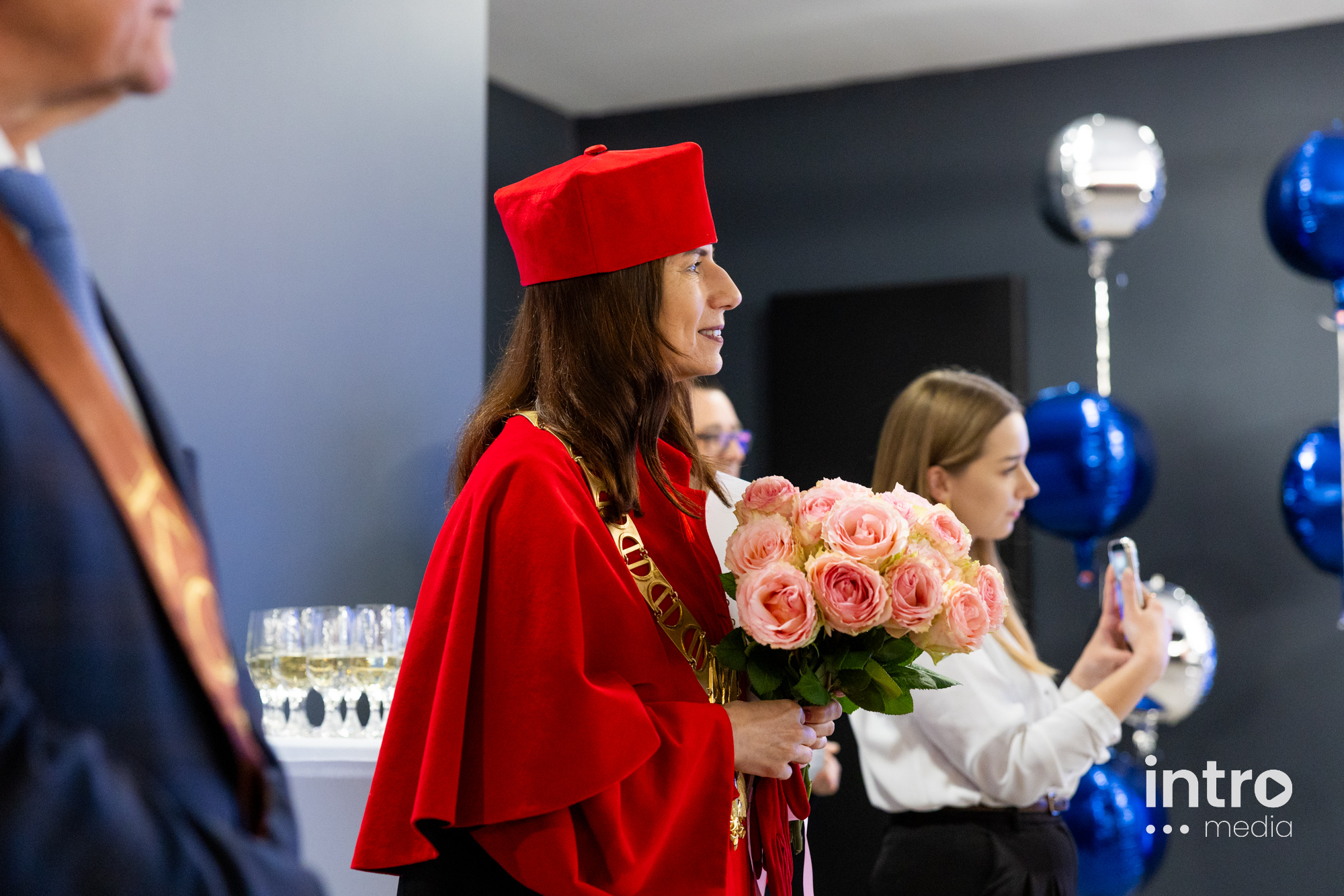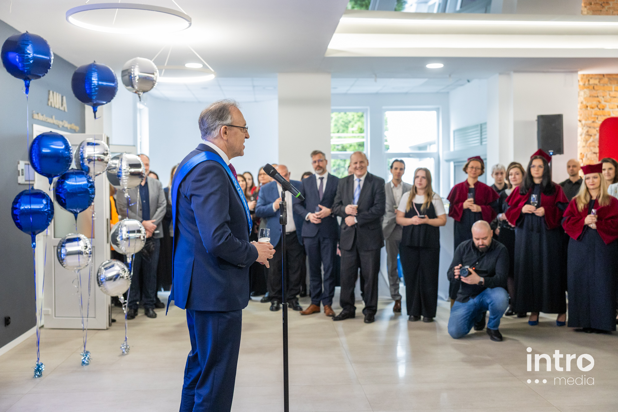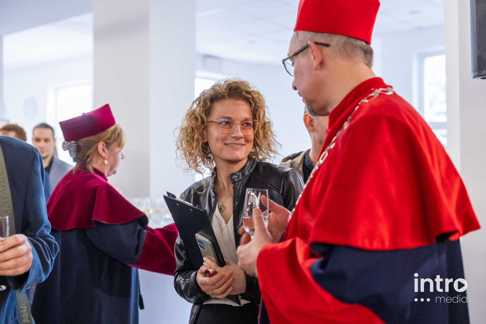 Po zakończeniu części oficjalnej, uczestnicy wydarzenia udali się do holu WSIiZ aby wznieść honorowy toast.