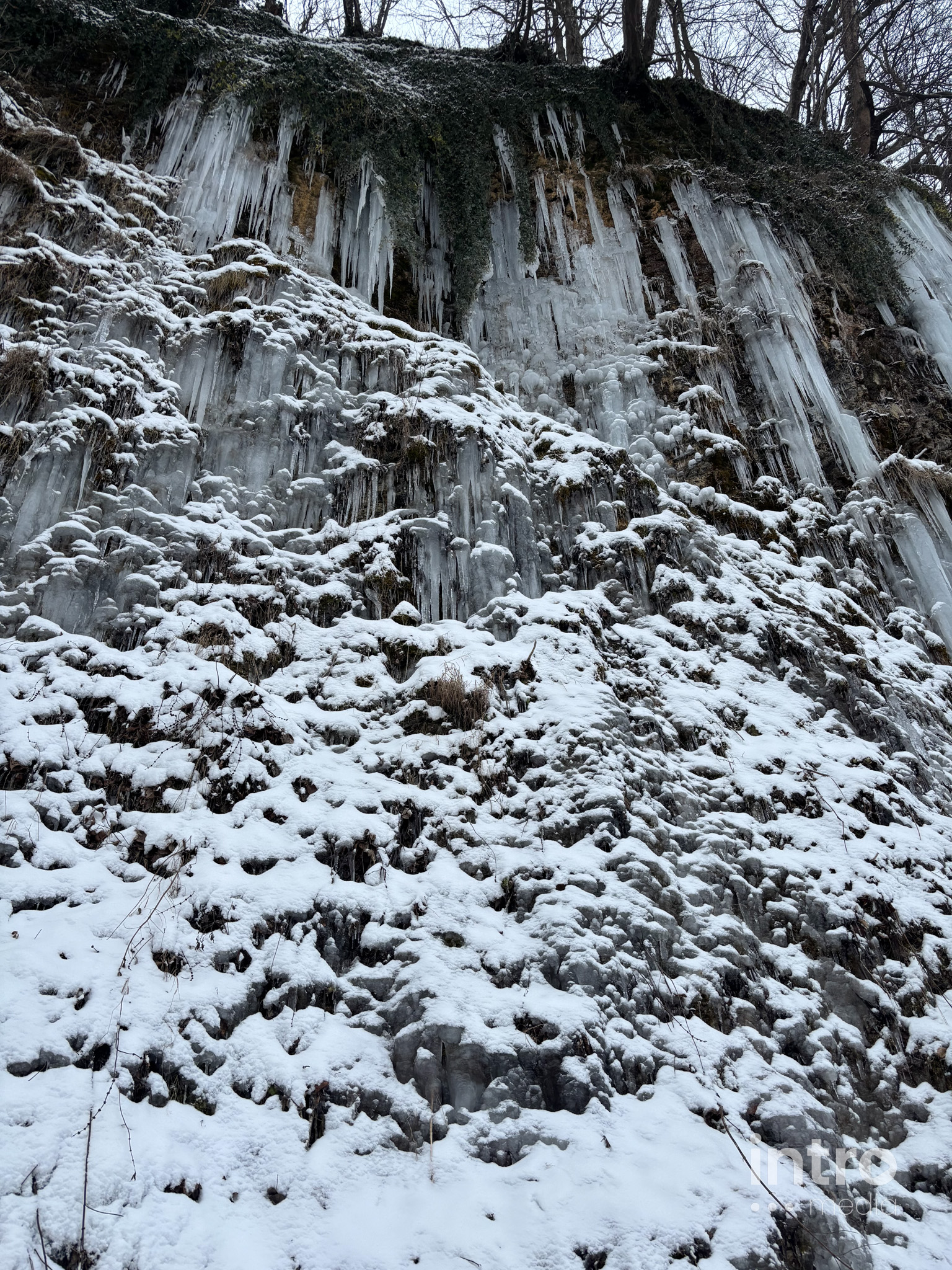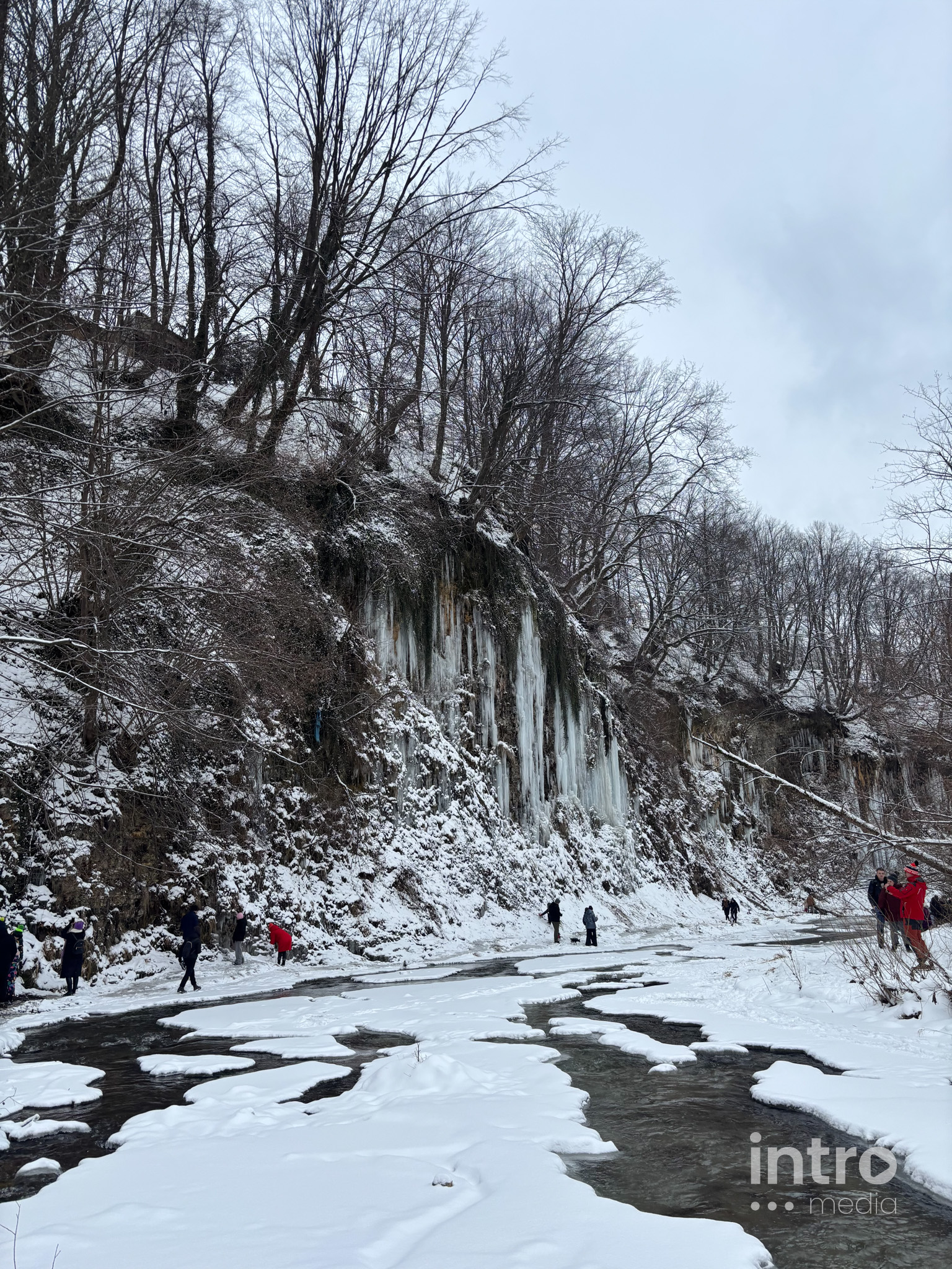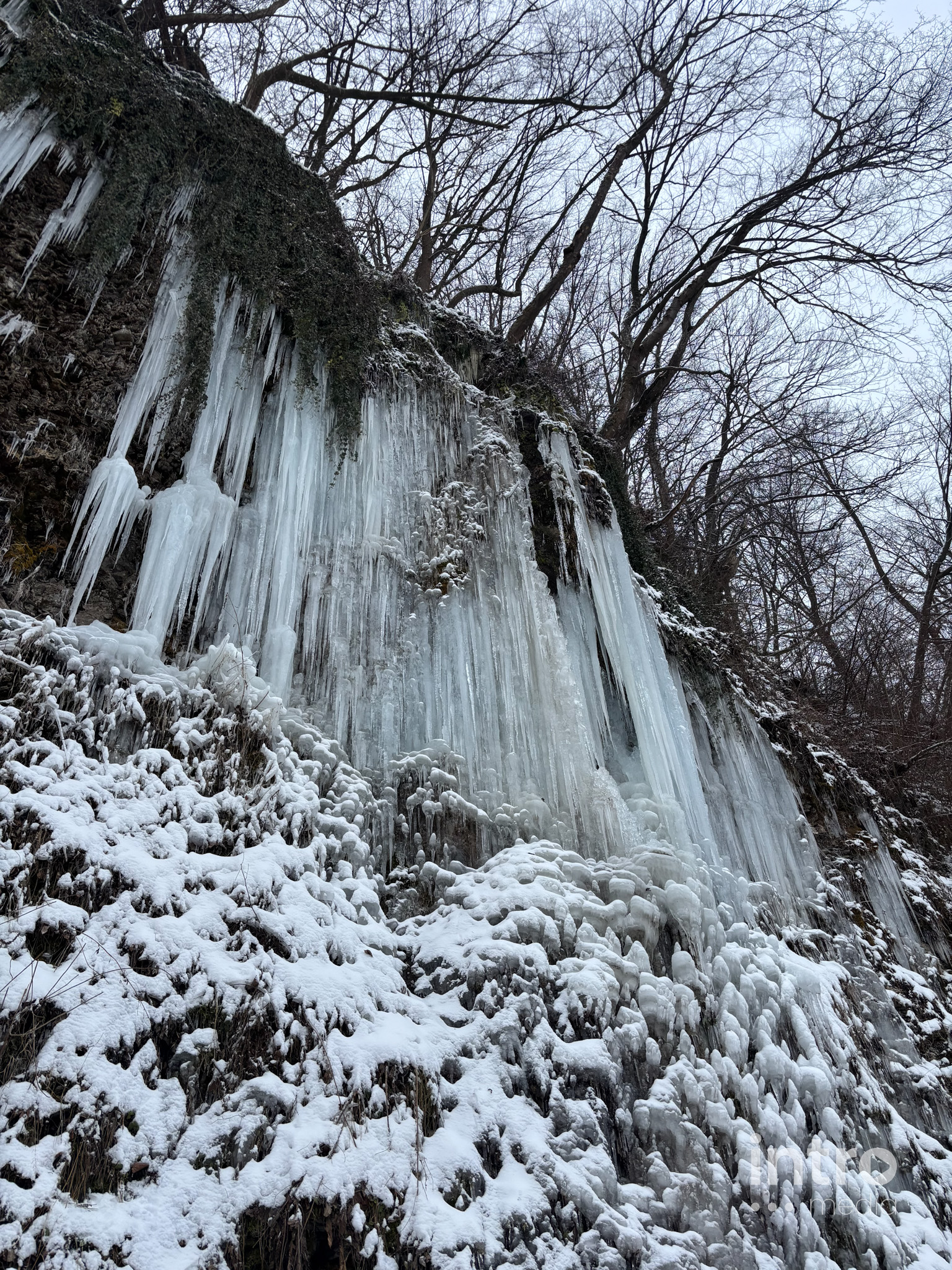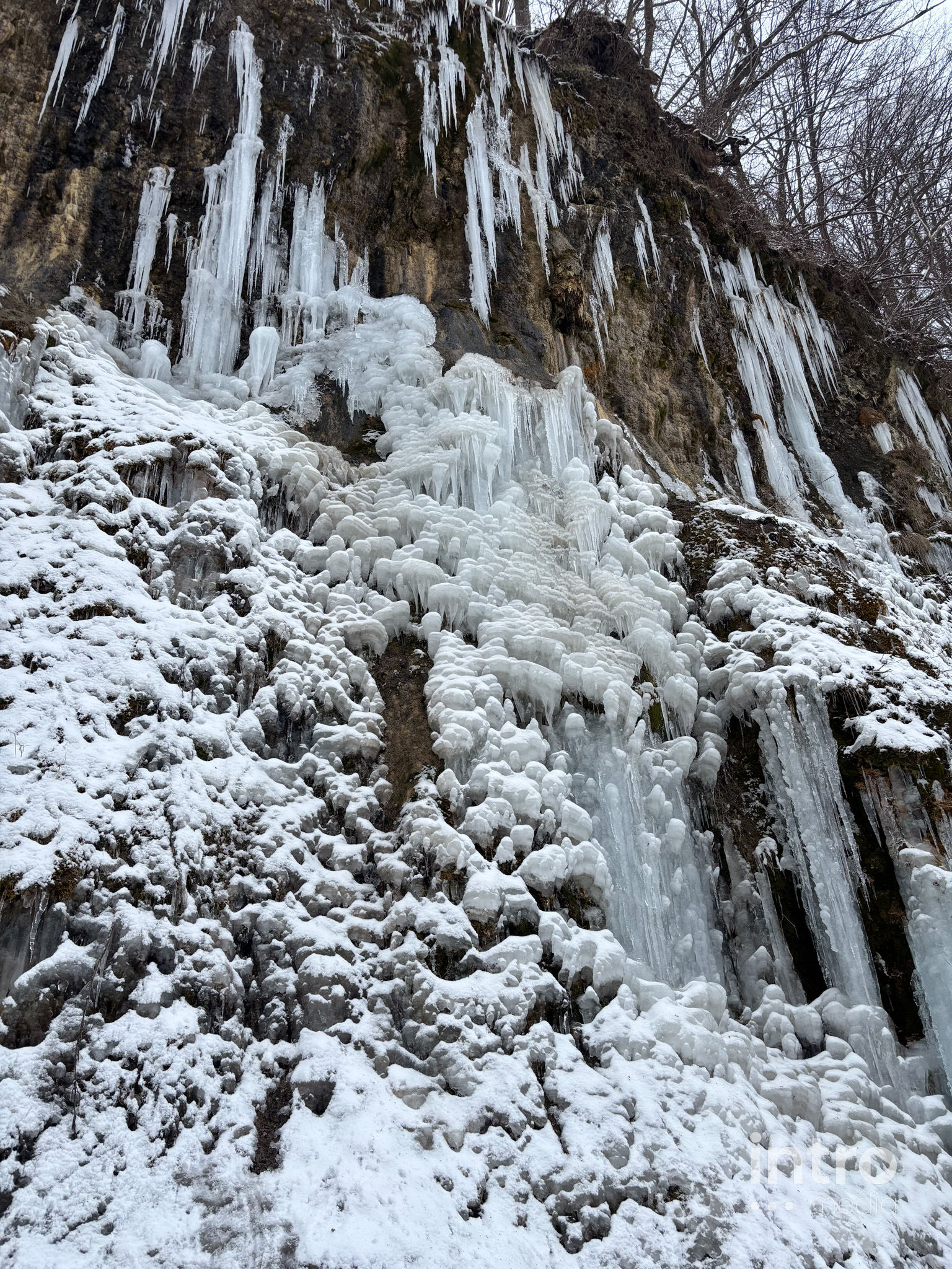 Wyprawa do lodowego królestwa zaczyna się od emocji – strome zejście z parkingu to świetny tor saneczkowy dla dzieci. Dalej trasa wiedzie przez urokliwy las i koryto zamarzniętej rzeki. Spacer pośród oszronionych drzew to najlepszy sposób na zimową regenerację.