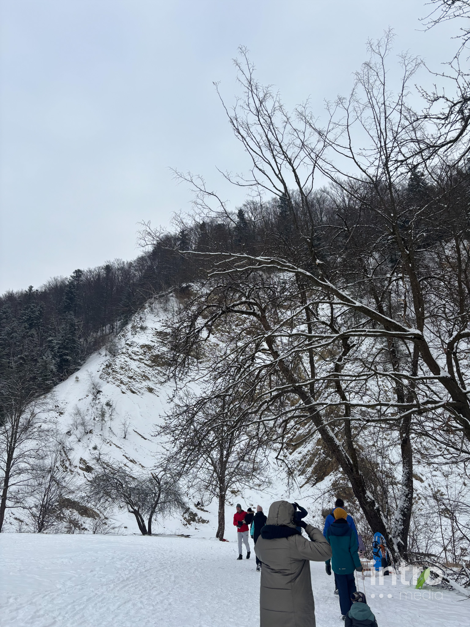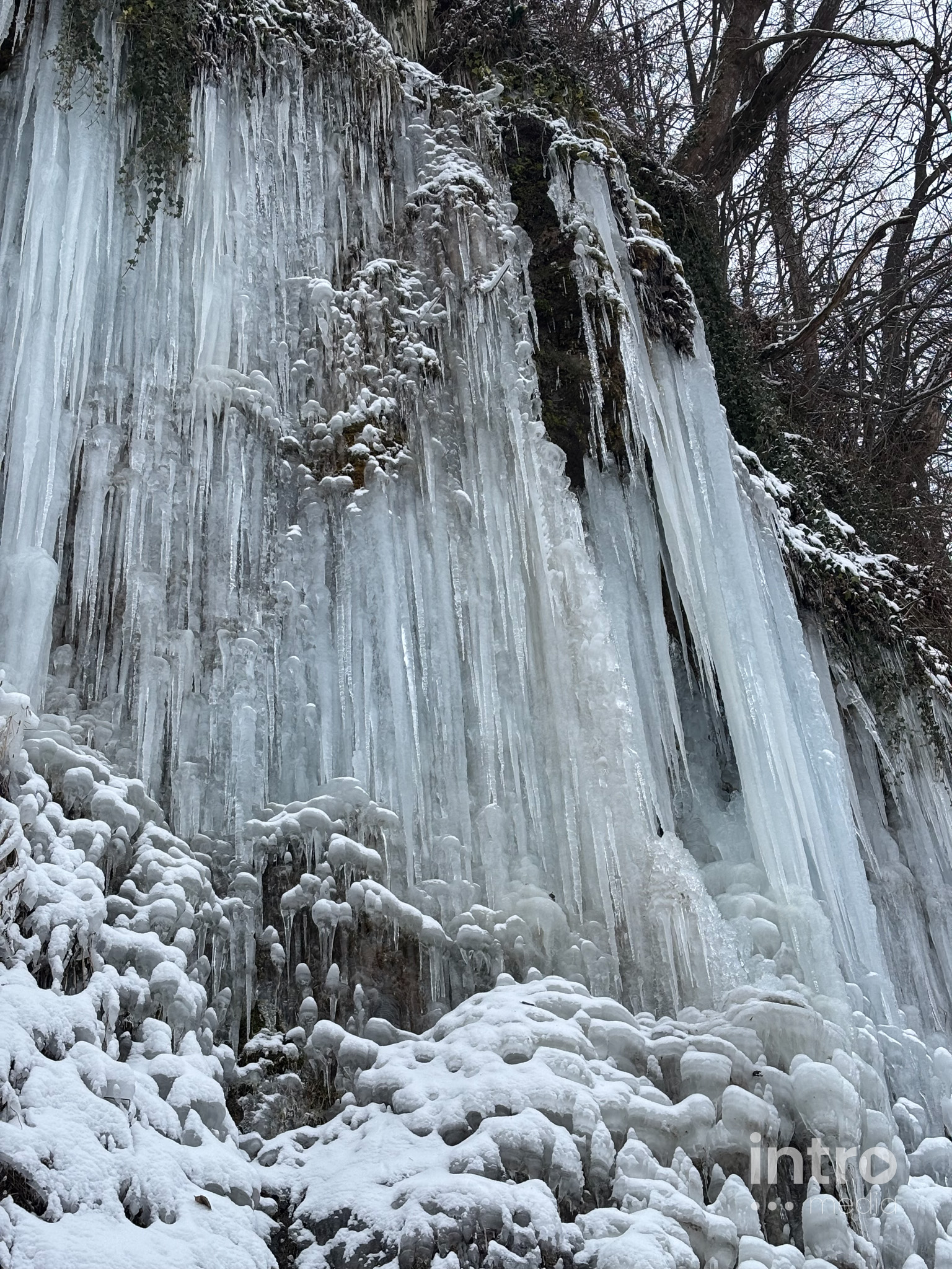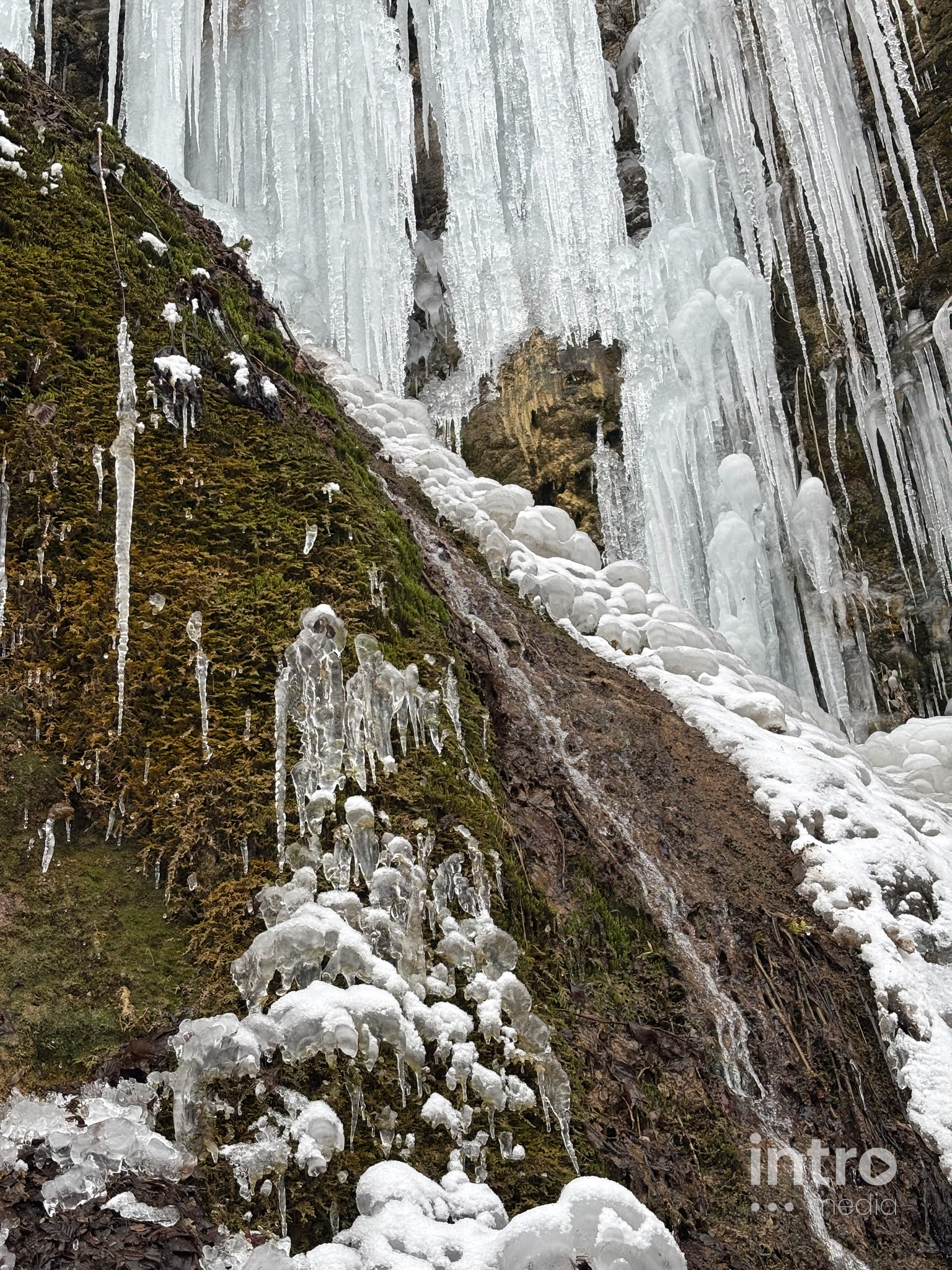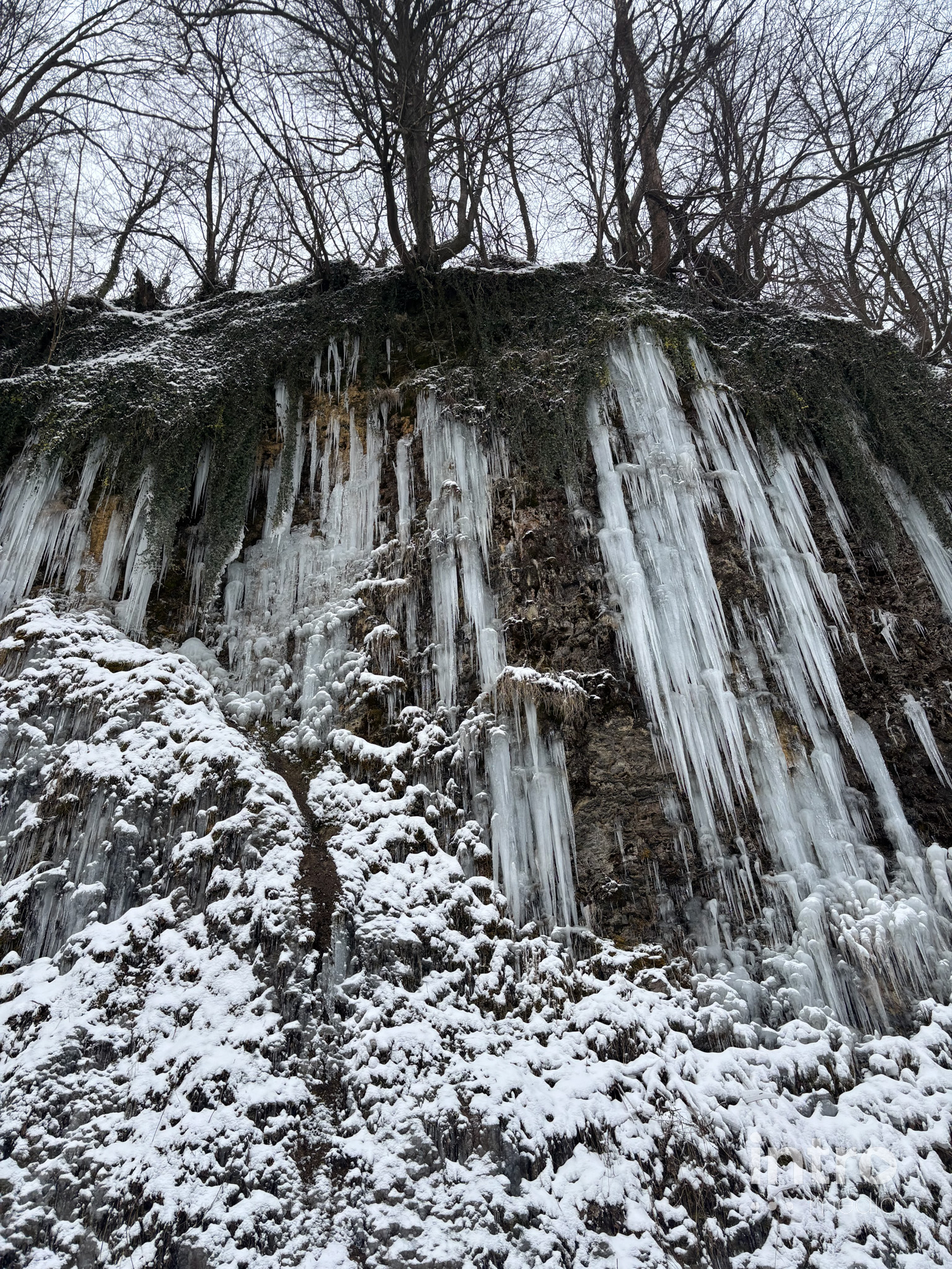 Wyprawa do lodowego królestwa zaczyna się od emocji – strome zejście z parkingu to świetny tor saneczkowy dla dzieci. Dalej trasa wiedzie przez urokliwy las i koryto zamarzniętej rzeki. Spacer pośród oszronionych drzew to najlepszy sposób na zimową regenerację.